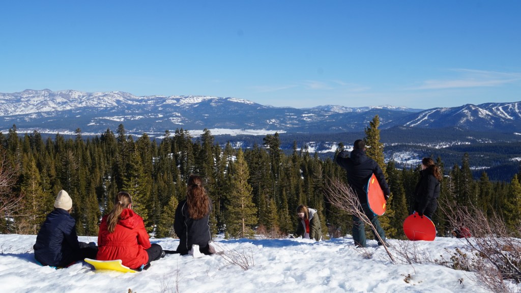 We also went hiking. It was my first time hiking in the snow. We climbed the mountain and enjoyed the panoramic view of our beautiful Lake Tahoe.