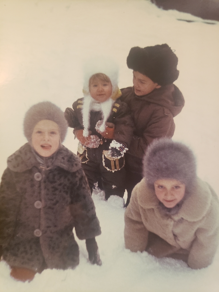 Every year winter memories from my childhood come back. Something special that I cherish greatly. When I was a child, my siblings and I spent a lot of time outside, especially during winter break. We would ski, play in the snow, build snow forts, go sleighing, try to make small ice rings or ice hills for sleighing, and much more. But my favorite winter memory would be when our dad was home, and he would take us all to the nearby hill to sleigh. He would connect our sleighs together to create a train and then pull us all, all the way there and back. We all had lots of fun riding our sleigh train.