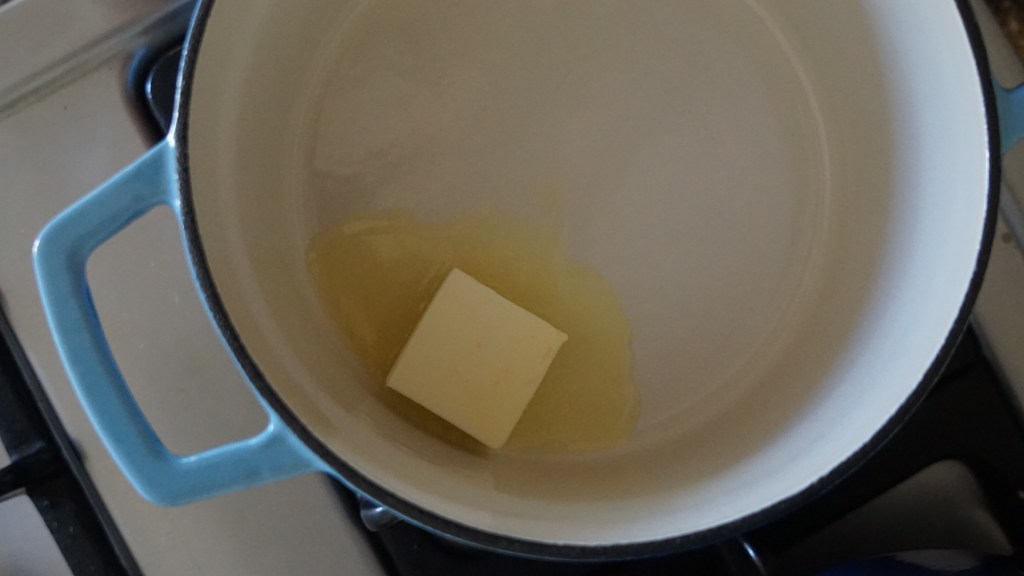 Put a pot of your choice on medium high heat, add butter, and let it melt.