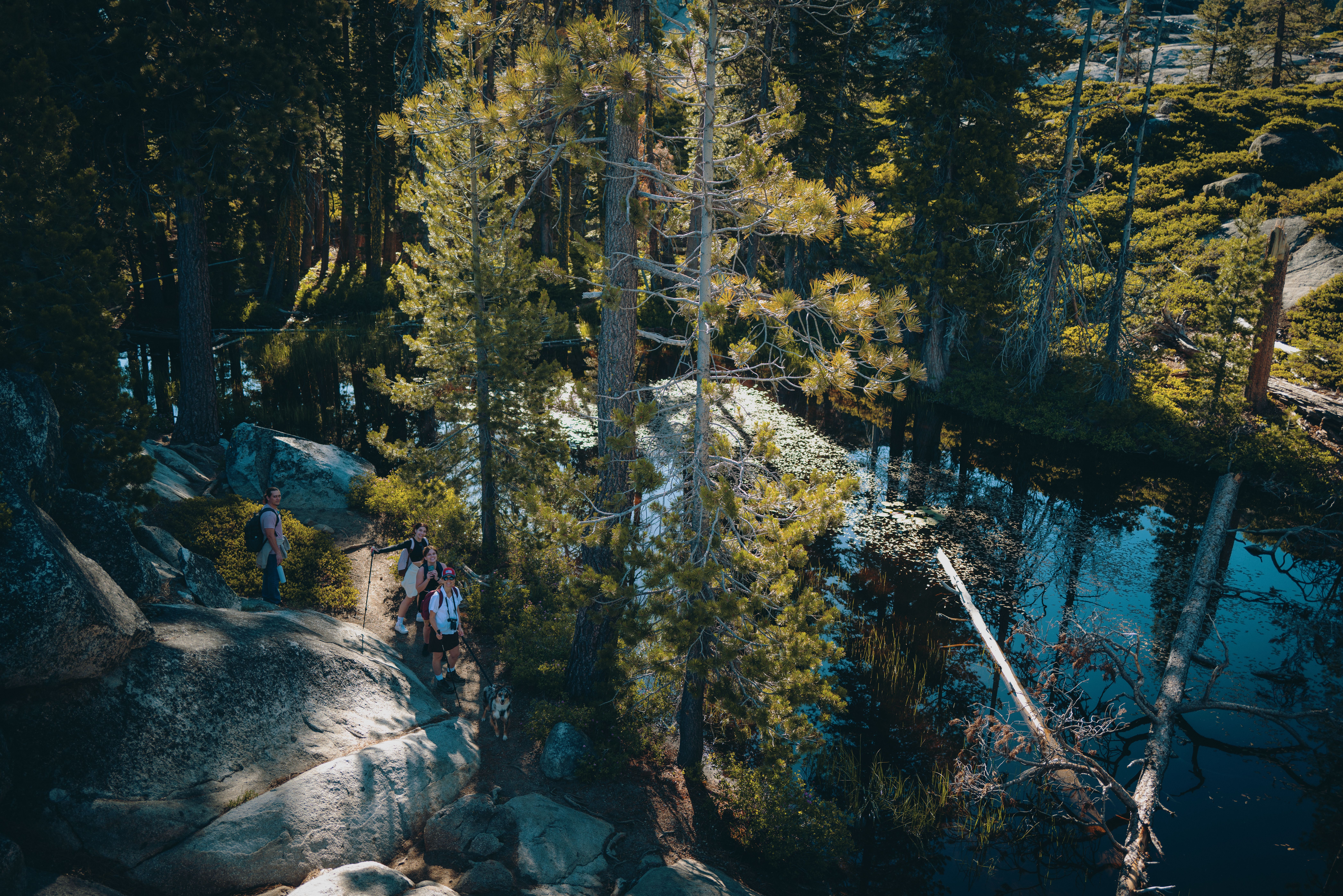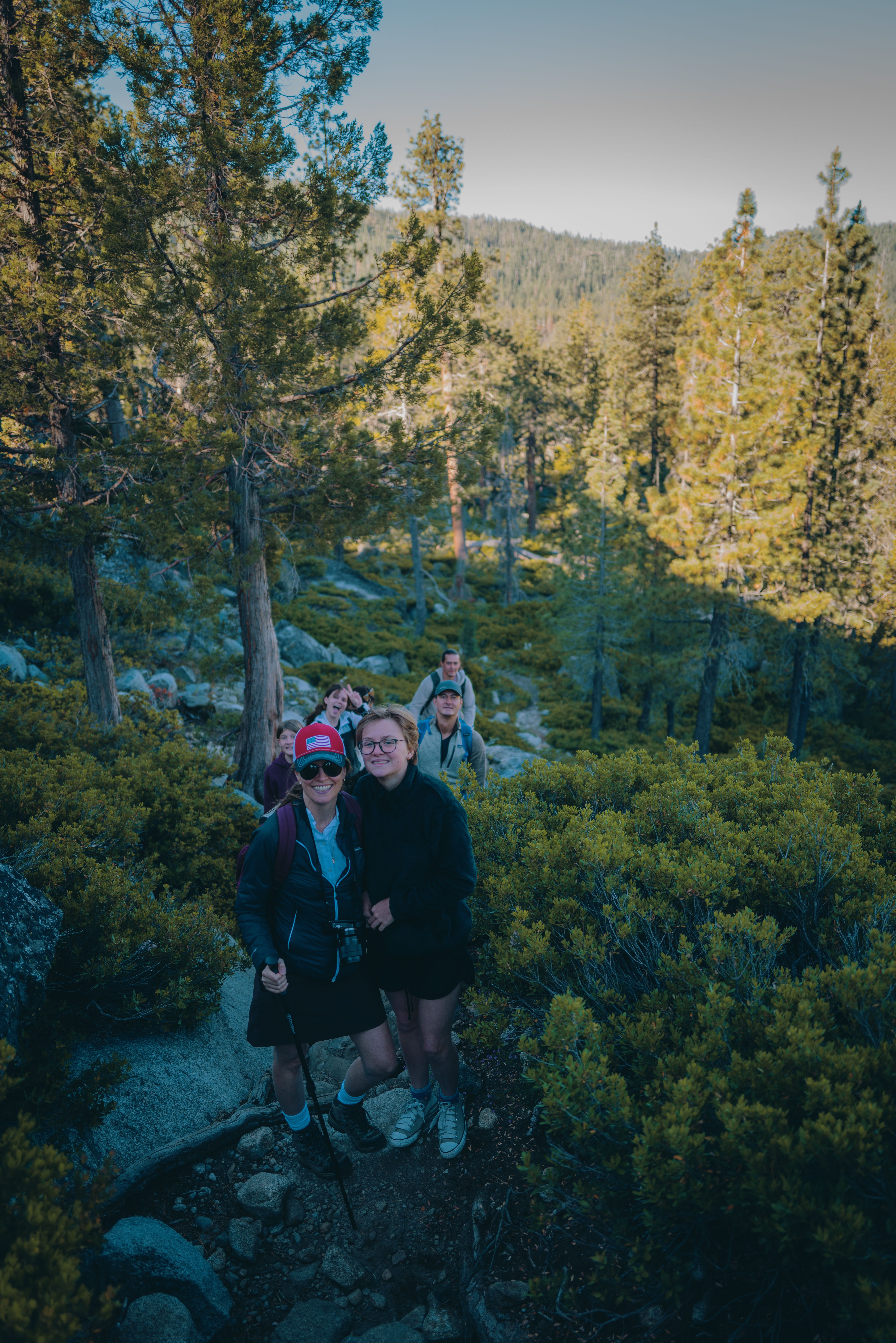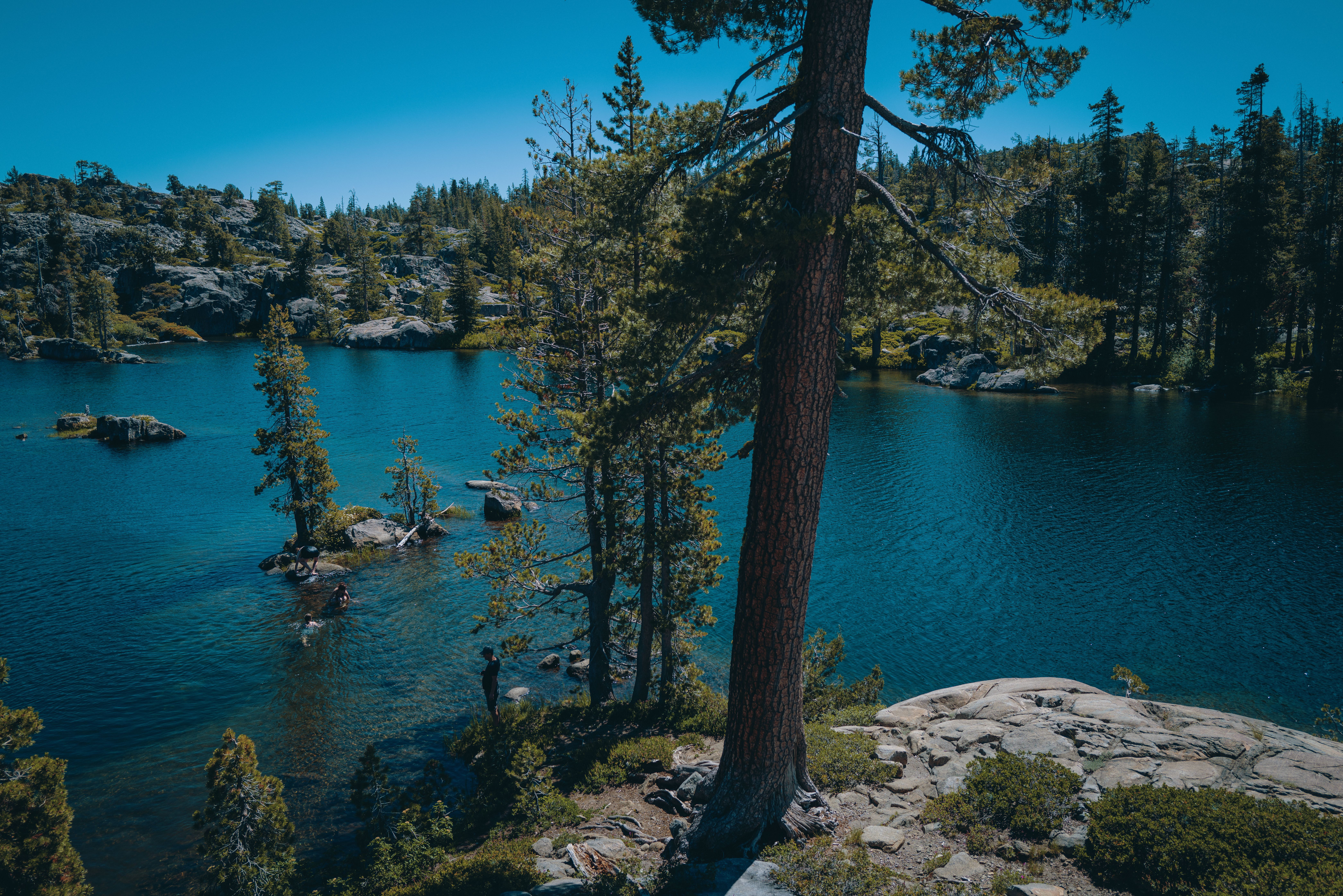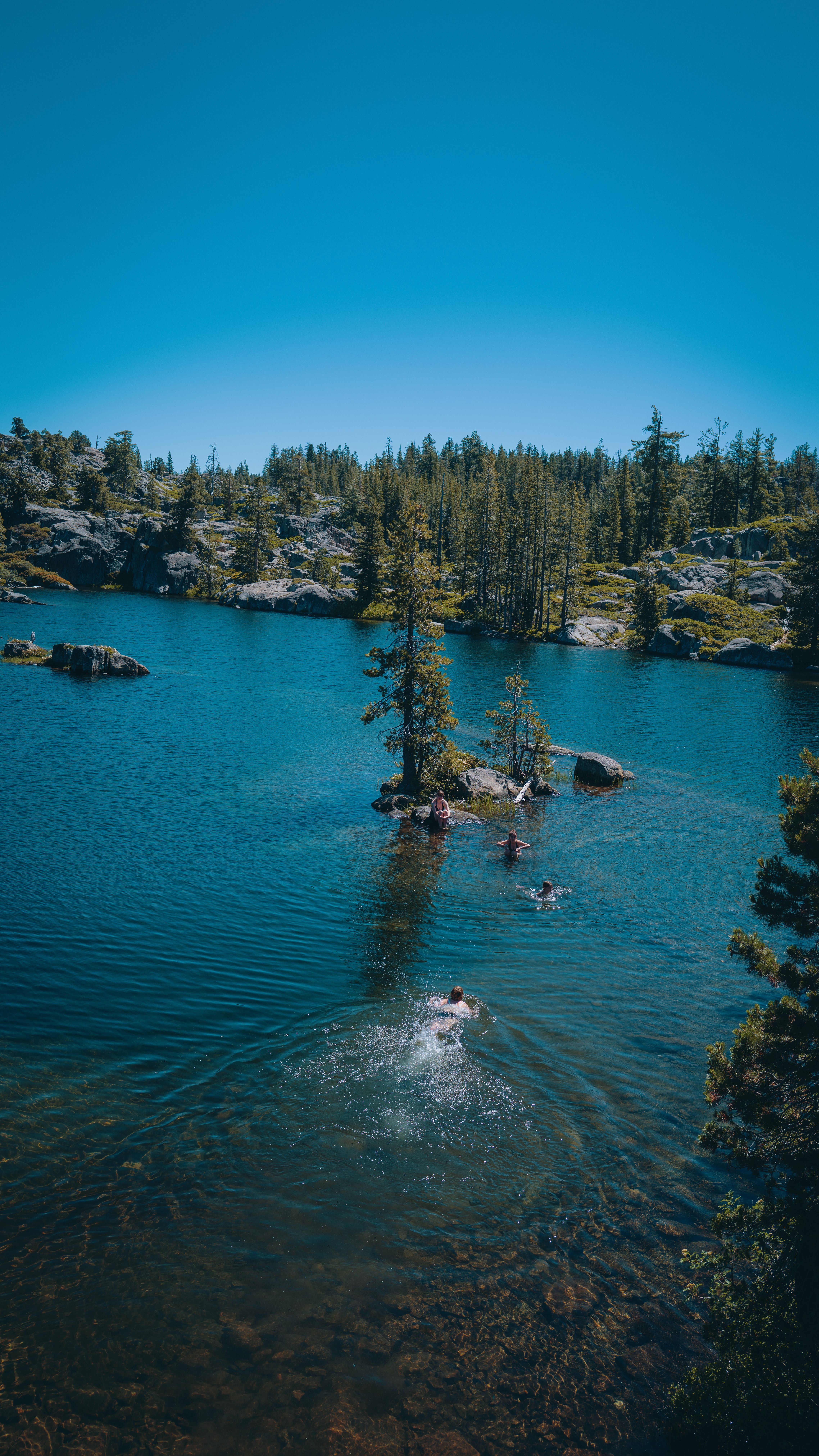 We hiked up the mountain. This trail takes you up to the scenic high alpine Sierra Nevada lakes. When we got to the big lake, we enjoyed our lunch there with an amazing view. We had time to rest, fellowship and swim there.