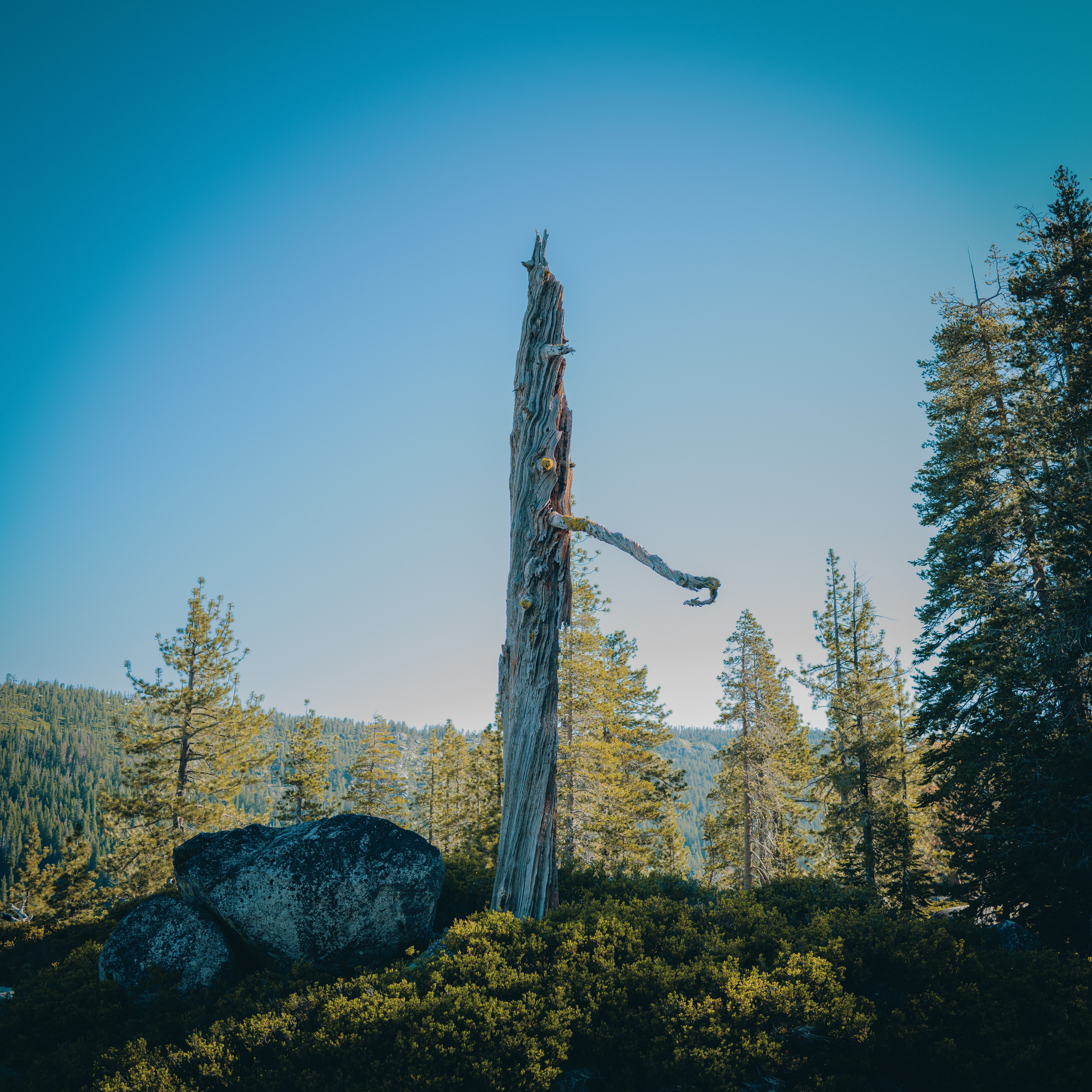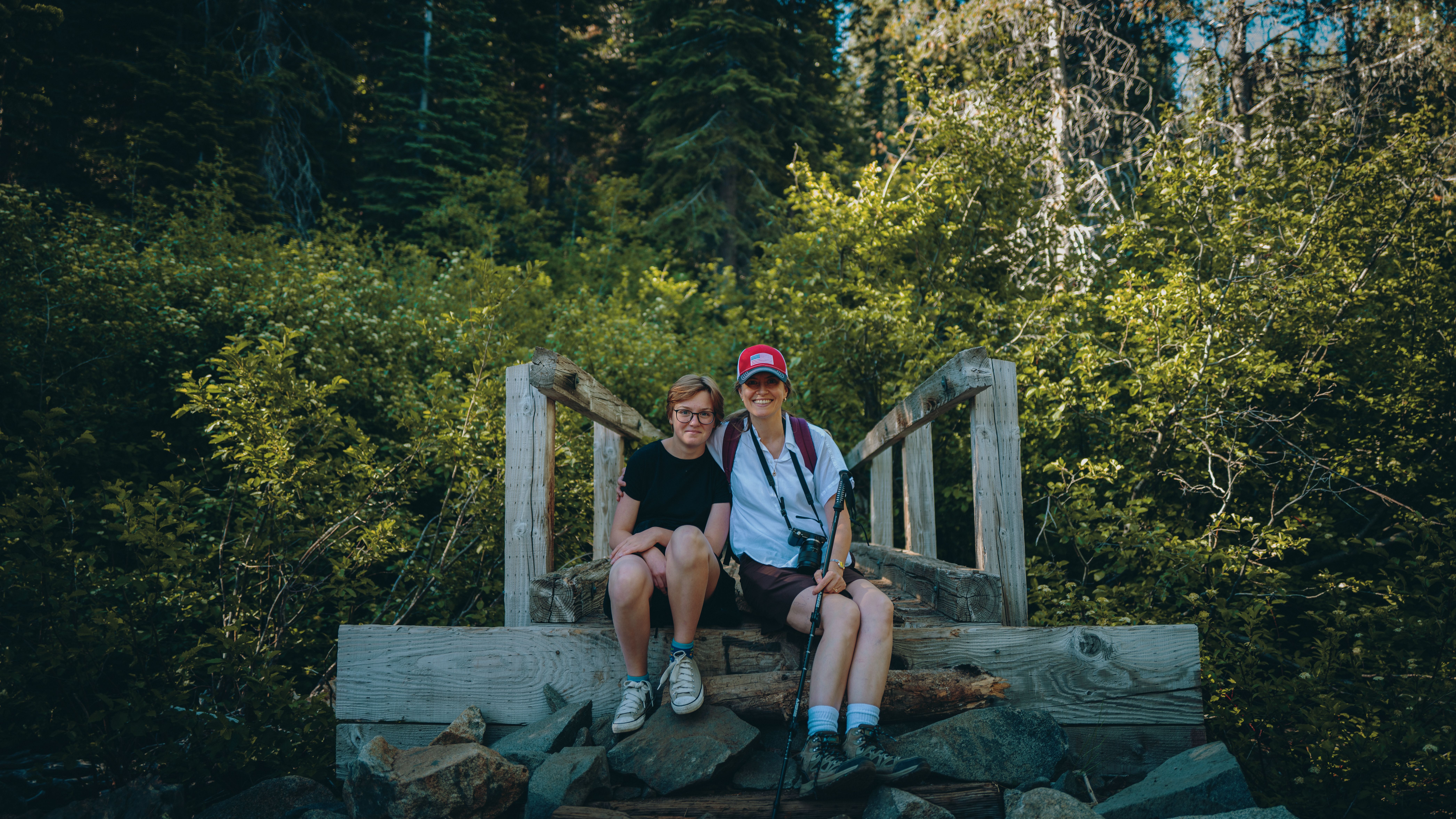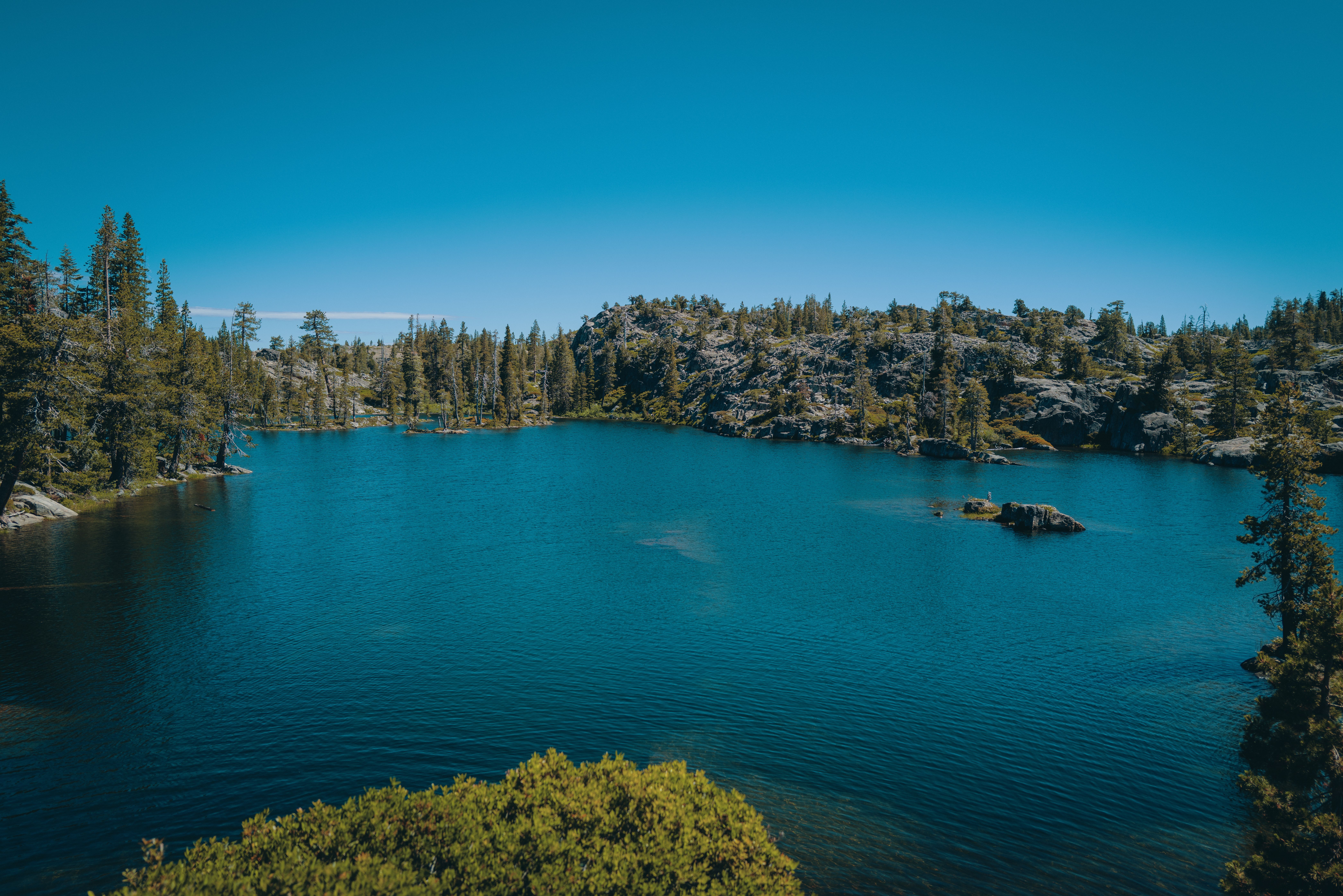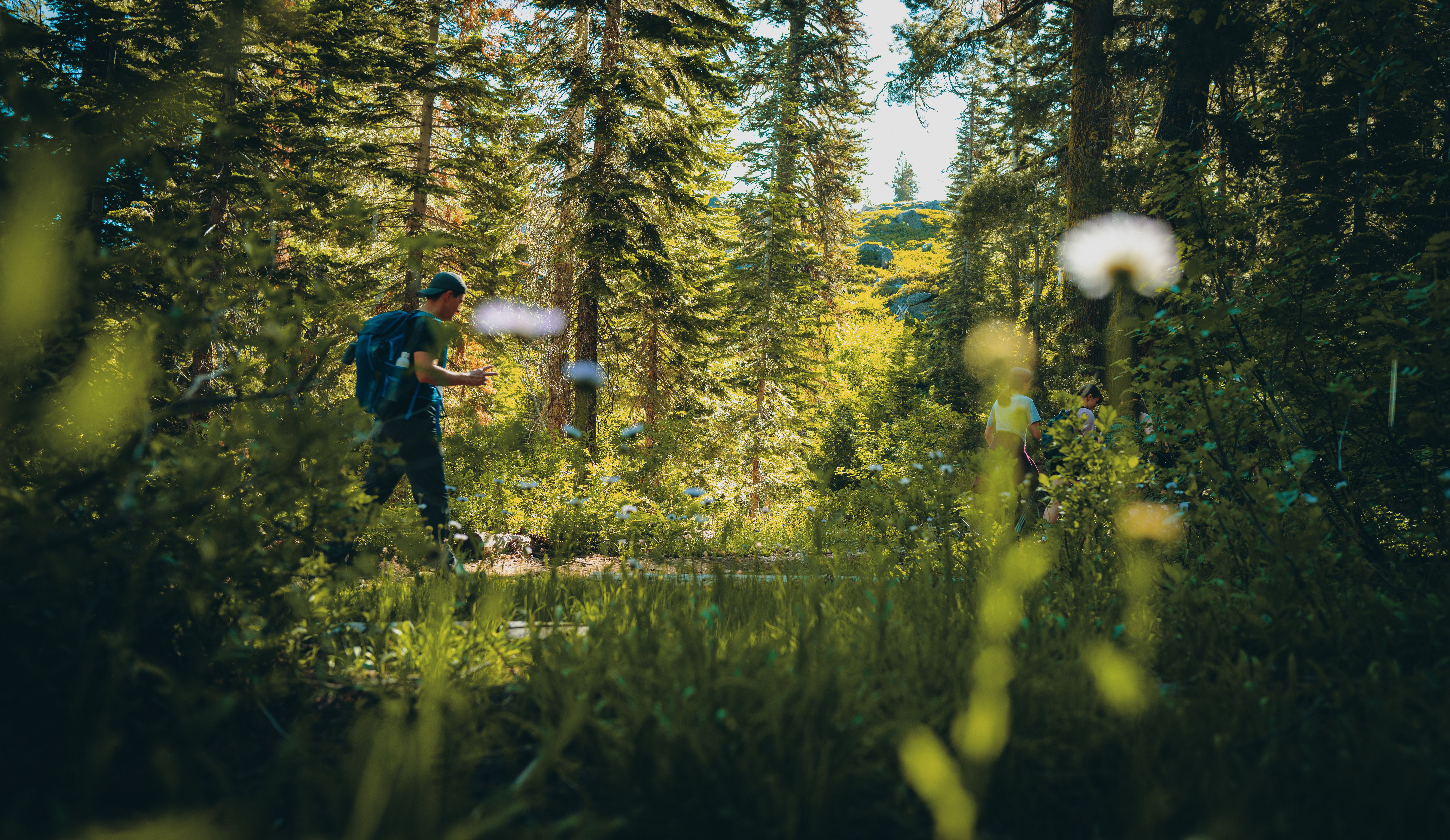 We hiked up the mountain. This trail takes you up to the scenic high alpine Sierra Nevada lakes. When we got to the big lake, we enjoyed our lunch there with an amazing view. We had time to rest, fellowship and swim there.
