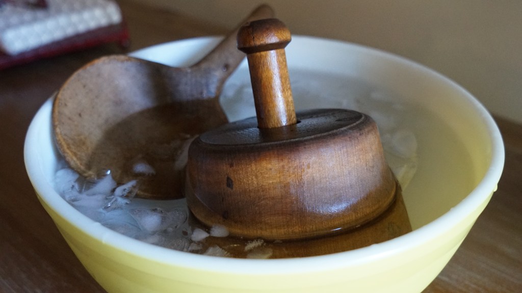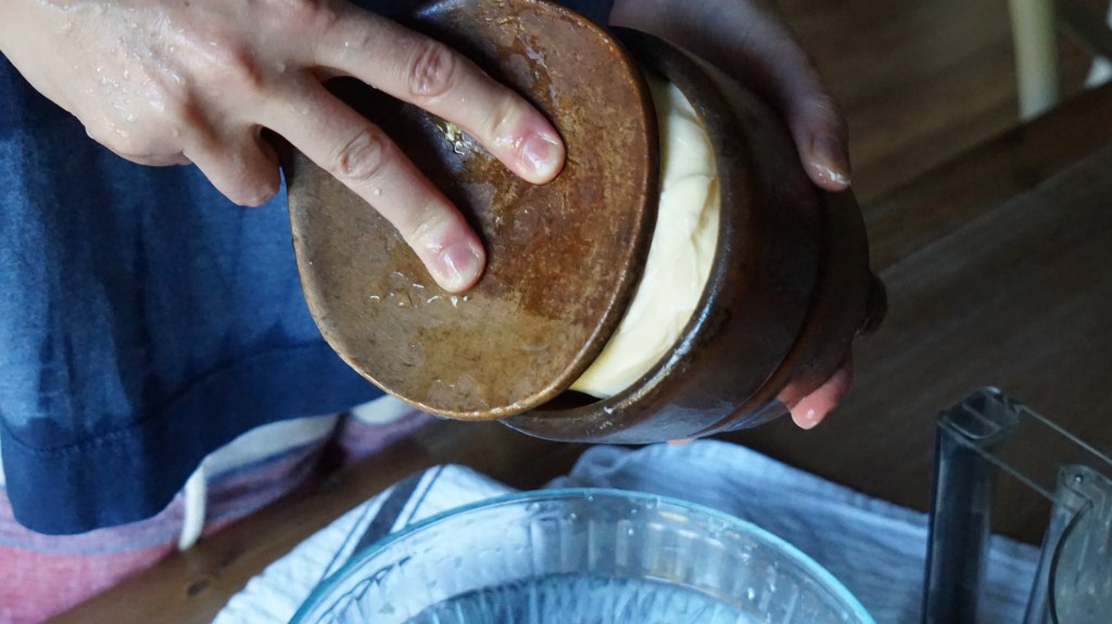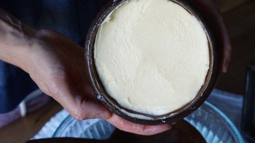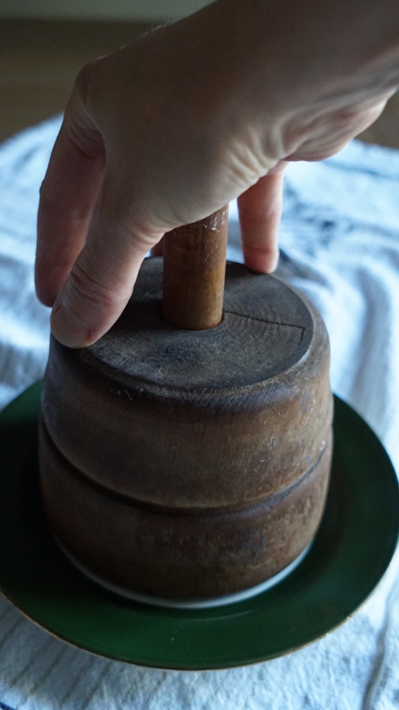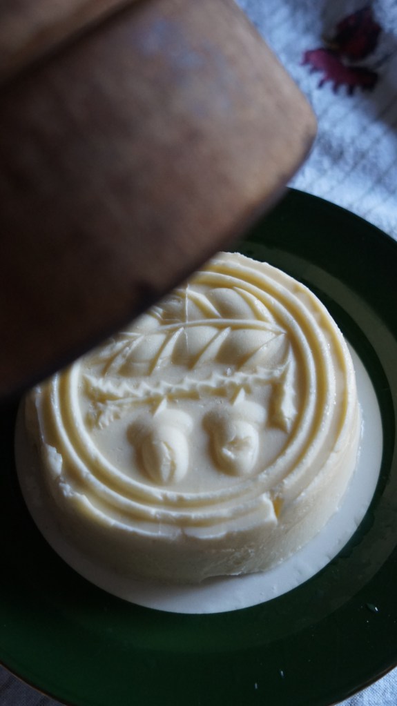 When your butter is ready, you can simply shape it into a rectangle and wrap it in the parchment paper. I’m using my antique butter press/mold. I found it on my last trip to Ohio. I am super happy about this find.
