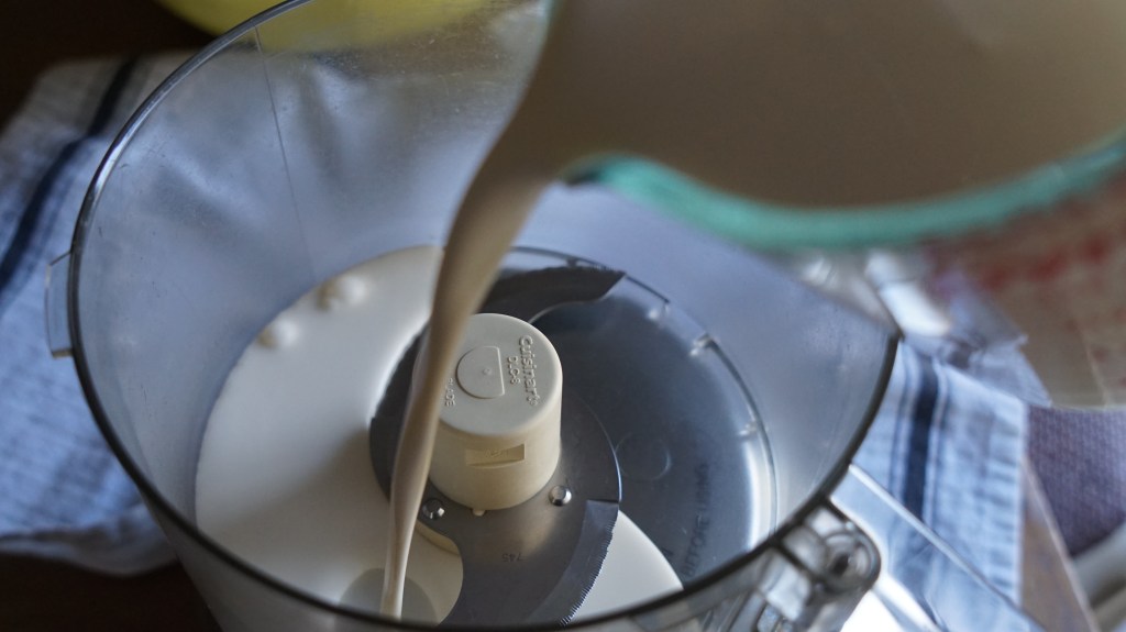 You have some options here – food processor or stand mixer with a whisk attachment.
