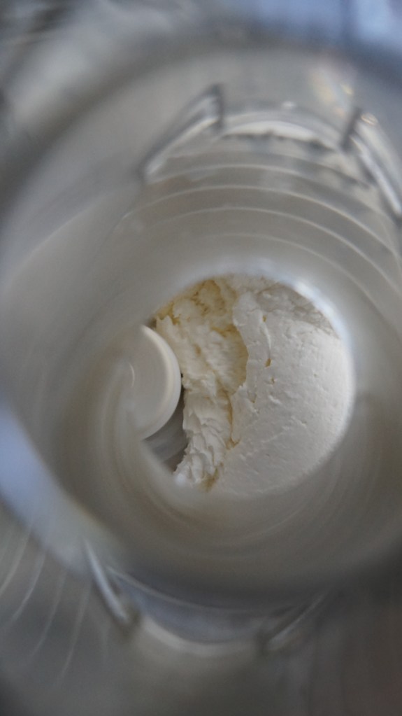 2. Pour heavy whipping cream into the food processor. I used 2 cups of heavy whipping cream. That’s the most I can pour into my food processor.