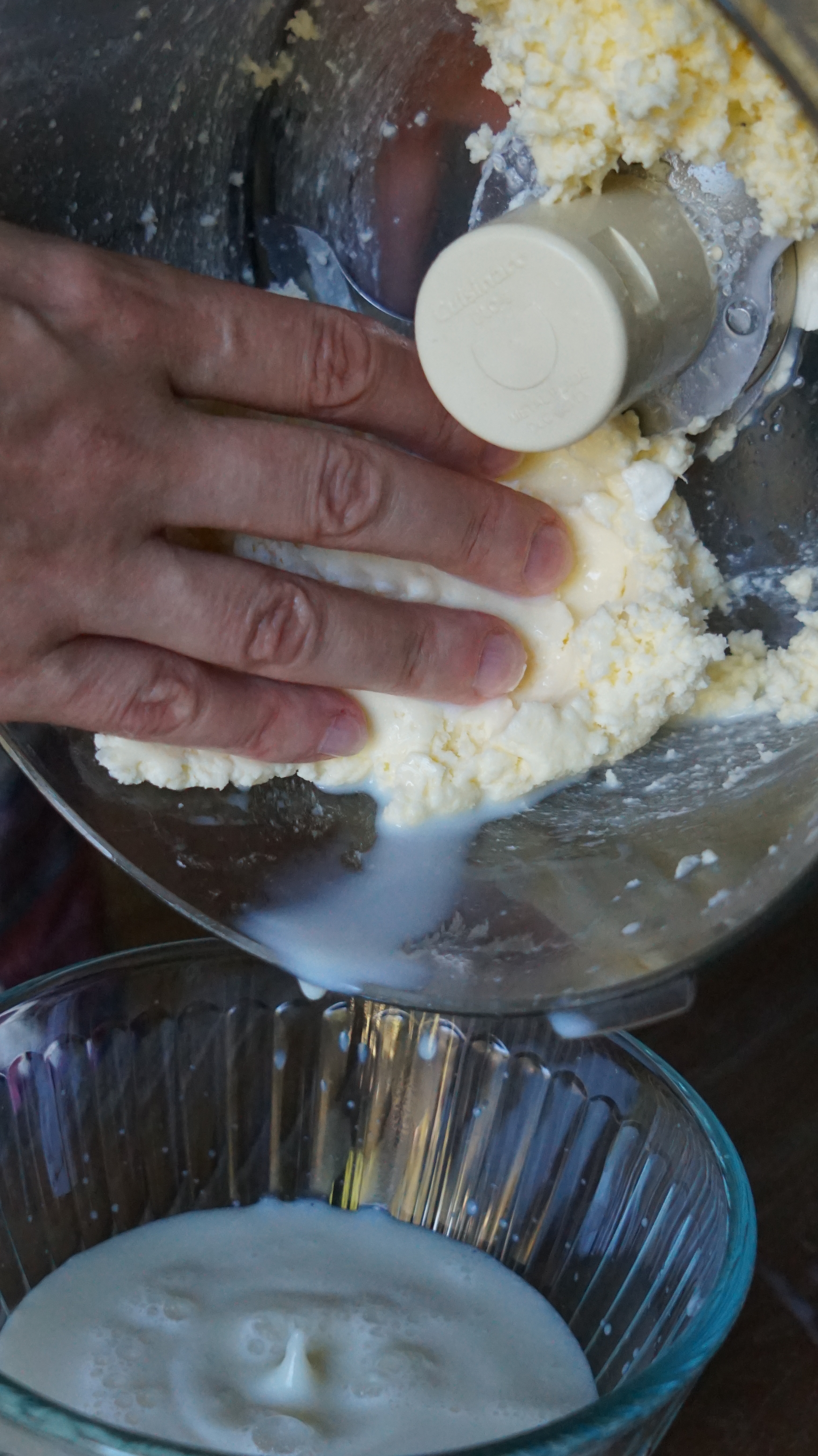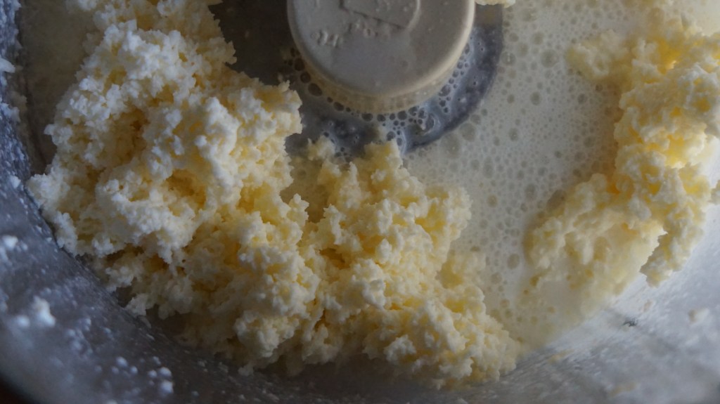 Meanwhile prepare a bowl with cold water on the counter next to your food processor for washing the butter.