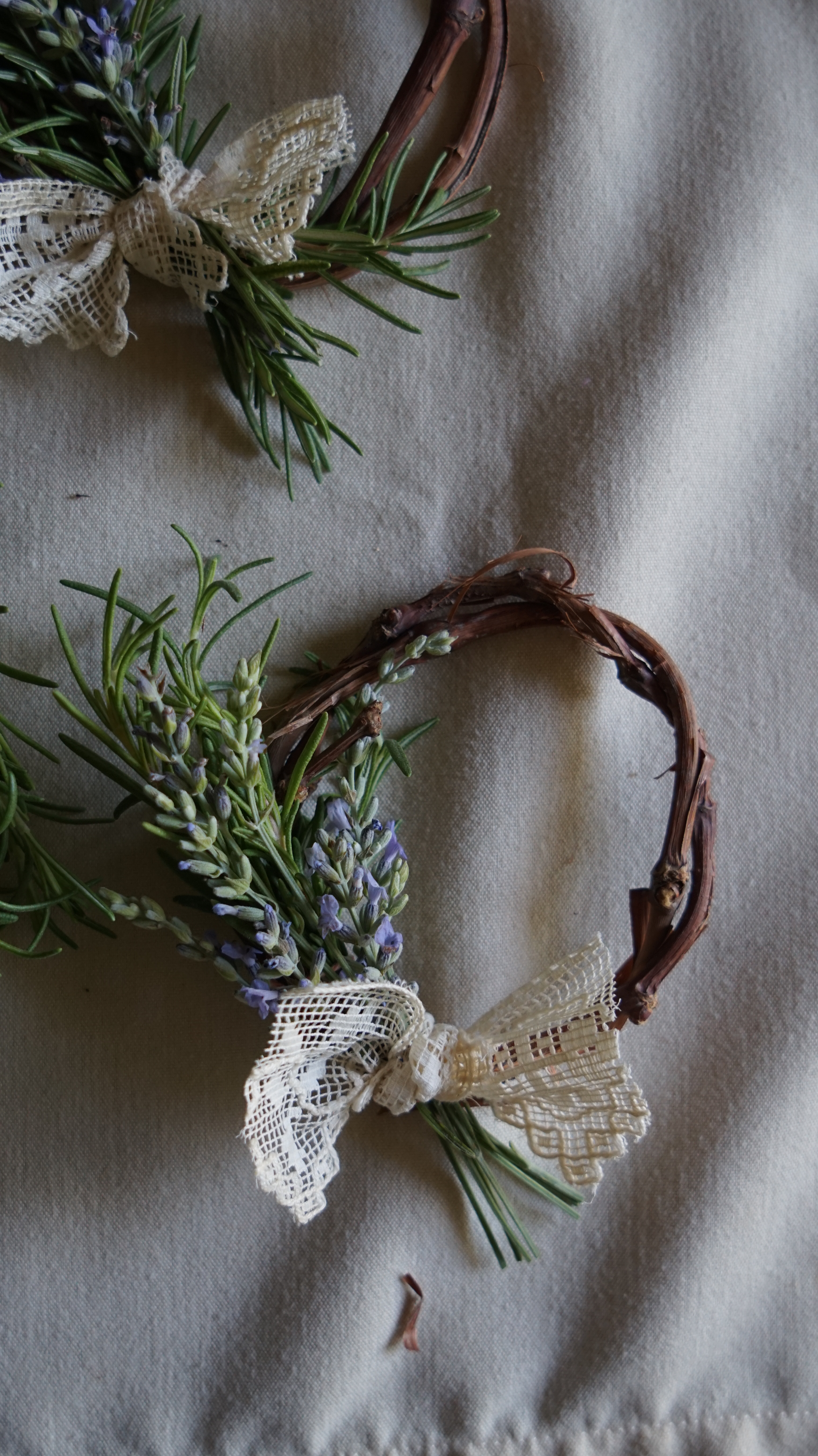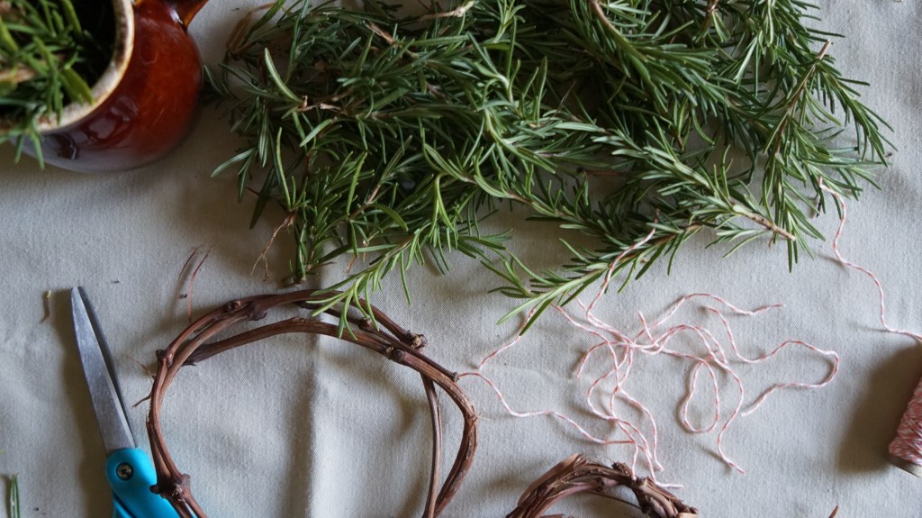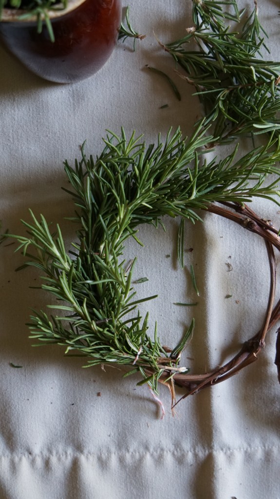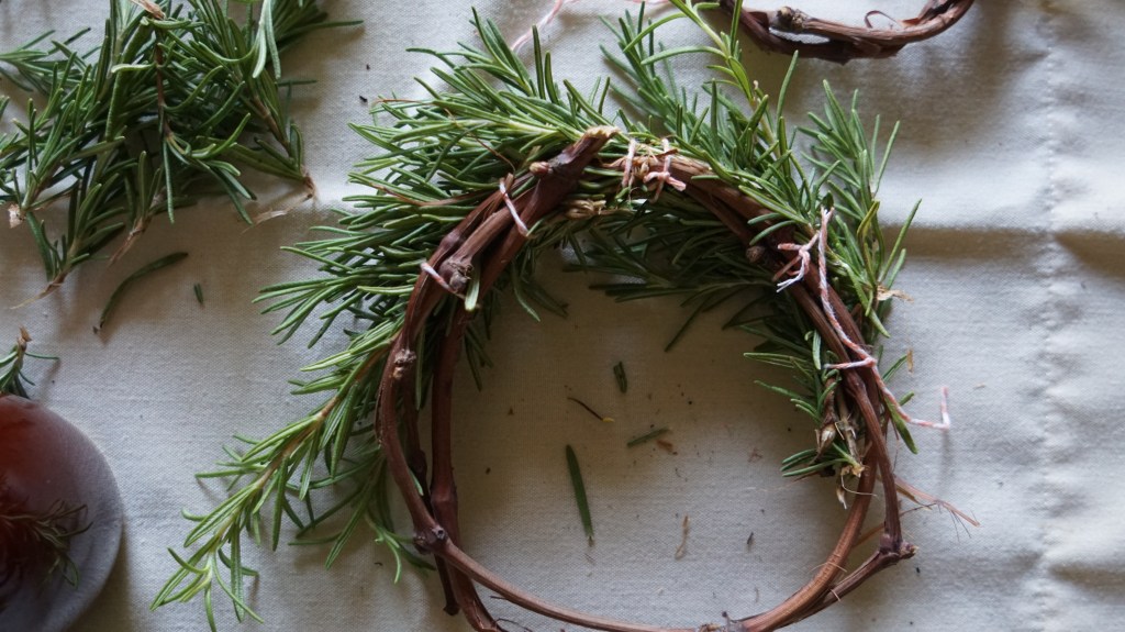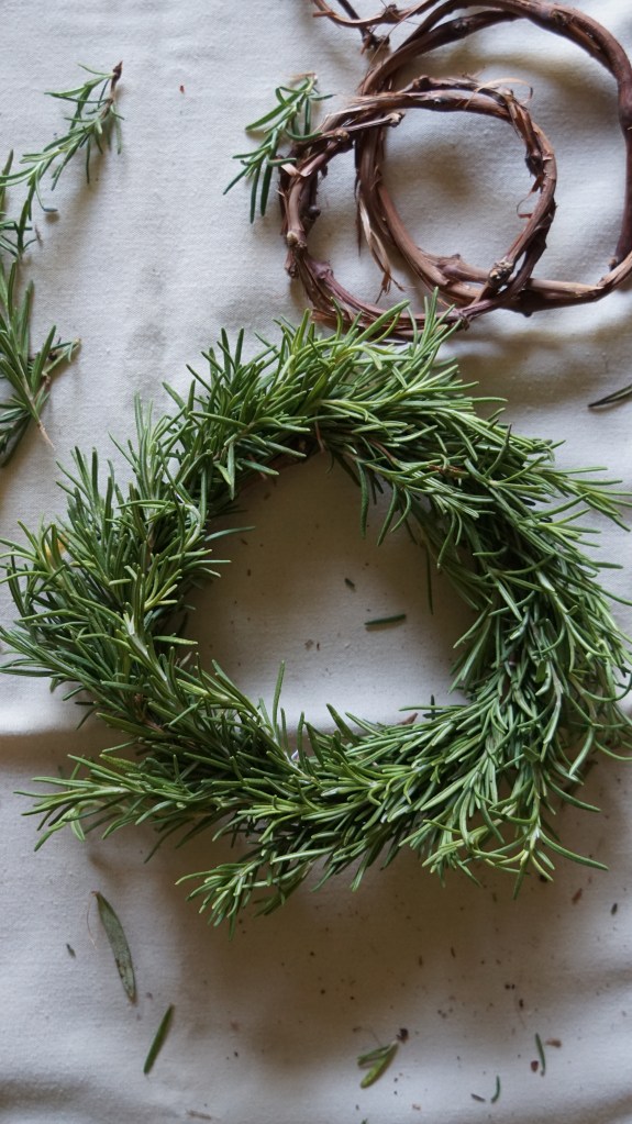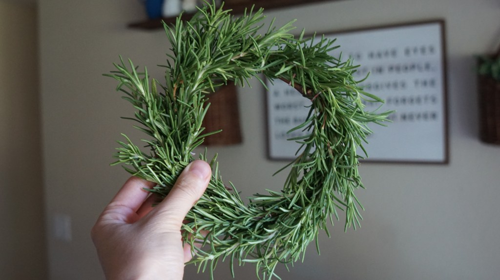 I took pictures of the process when I made small wreaths using rosemary. You can see the process of my herb wreath in a quick video at the end of this post.