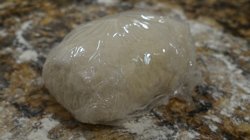 Turn out the dough onto a lightly floured work surface. Shape it into a rectangle, wrap it in plastic wrap, and place it in the fridge for at least 2 and up to 4 hours.